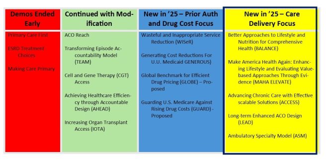 2025 was a busy year for the Center for Medicare and Medicaid Innovation (CMMI), the agency within CMS that develops and tests promising new healthcare payment and service delivery models for their ability to improve quality, reduce unnecessary cost, and improve patient experience. CMMI ended some demonstrations early, modified components of other demonstrations, and launched an array of new demonstrations – ten in the past two months alone. Some of these new demonstrations focus on prior authorization and drug pricing, but of special focus to those interested in primary care and population health are those rooted in care delivery.