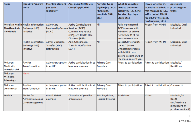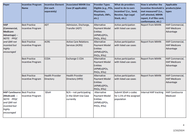 Timely data available at the point are essential for improving care. To encourage the adoption and use of health information exchange (HIE), health plans (“payers”) offer financial incentives to providers for participating in MiHIN use cases.