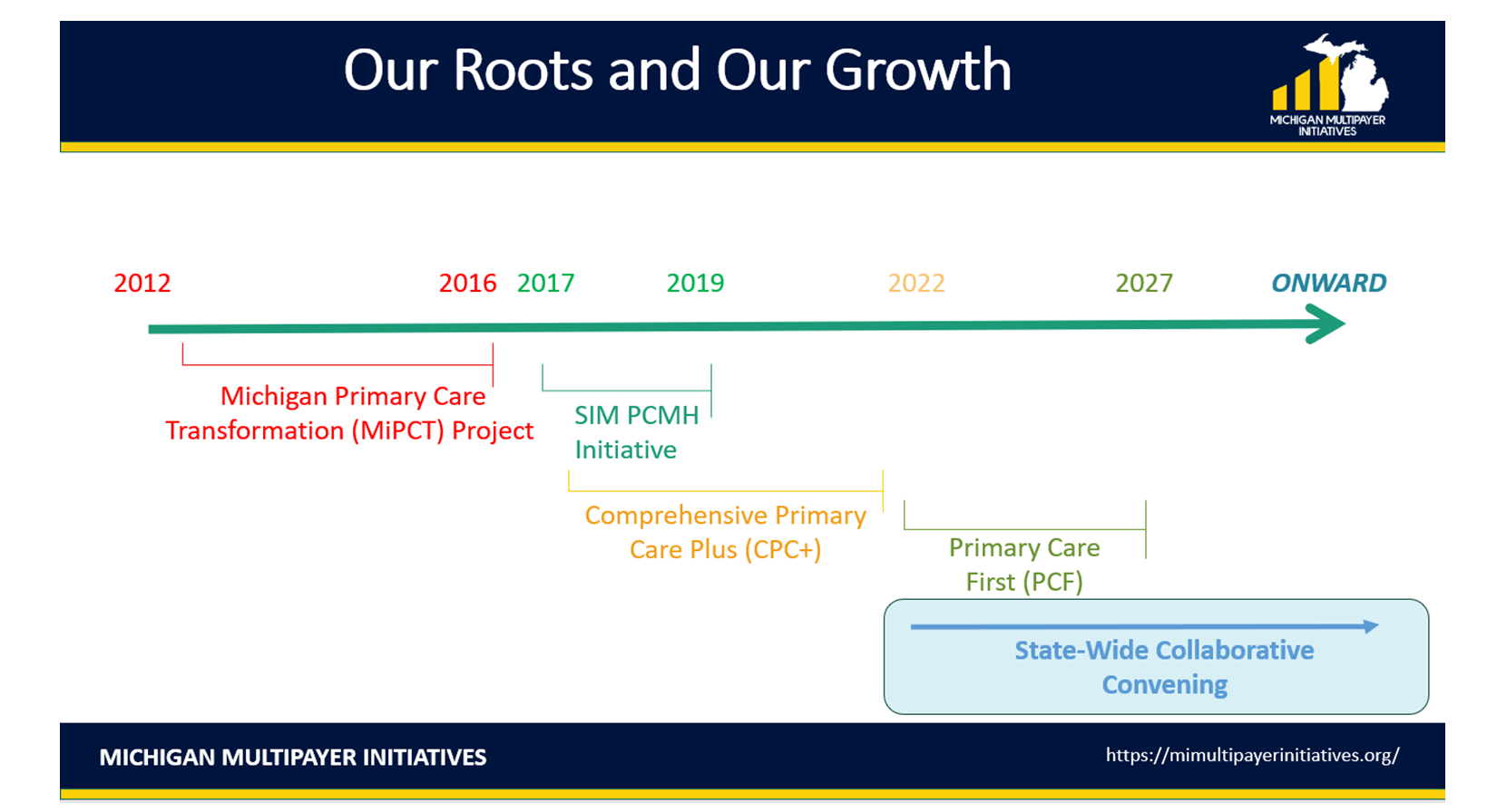 Michigan Multipayer Initiatives has convened served major CMMI multipayer demonstrations, and also serves to partner payers and providers statewide to advance evidence-based, aligned policies: